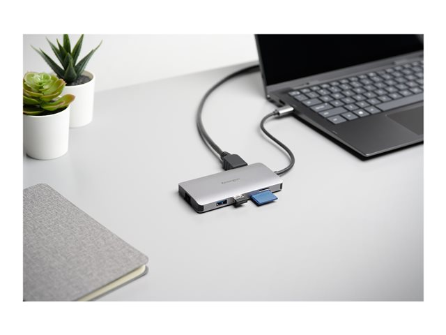 L'UH1400P, hub mobile USB-C 8 en 1, vous offre toute la connectivité dont vous avez besoin, en déplacement ou à domicile. Avec sa compatibilité universelle, ce hub mobile est une solution Plug and Play idéale pour les appareils sous Windows, macOS, ChromeOS, iOS ou Android. Pas besoin de télécharger, ni d'installer ou de mettre à jour un logiciel. Le technologie Ultra HD (4K à 60 Hz) augmente la productivité visuelle avec une résolution, un contraste et une profondeur de couleur élevés. Transfère jusqu'à 85 W d'alimentation : vous pouvez donc utiliser votre alimentation USB-C pour charger rapidement et facilement tout ordinateur portable USB-C (qui accepte l'alimentation via Power Delivery). Chargeur secteur 100 W Kensington (K33821) en option vendu séparément. 3 ports USB-A 3.2 Gen1 (dont 1 qui charge jusqu'à 5 V/1,5 A) et 1 port USB-C 3.2 Gen1. Le design compact se glisse facilement dans votre sacoche ou sac à dos, tandis qu'un câble de 25 cm permet de le placer en retrait lorsque vous le connectez. Les lecteurs de cartes SD et Micro SD 3.0 UHS-I intégrés rendent le transfert des photos rapide, facile et pratique.
