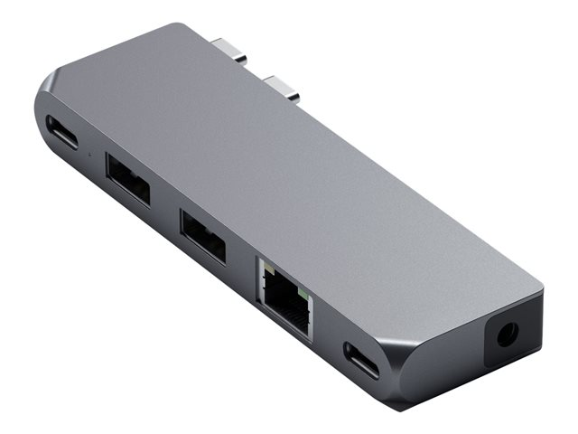 Description du produit Satechi Pro Hub Mini - station d'accueil - USB-C x 2 - USB4 - 1GbE Type de Produit Station d'accueil Interface de station d'accueil USB-C x 2 Interfaces vidéo USB4 Dimensions (LxPxH) 10.1 cm x 3.81 cm x 1.19 cm Couleur Gris sidéral Réseaux Gigabit Ethernet Garantie du fabricant 1 an de garantie -