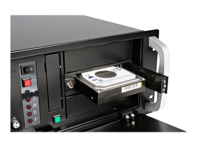 La baie échangeable à chaud offre une conception sans tiroir, ce qui en fait une solution idéale pour les retraits et les insertions rapides et faciles de disque, dans le cadre d'un processus de conception système ou d'intégration dans des systèmes montés sur rack ou des environnements industriels.