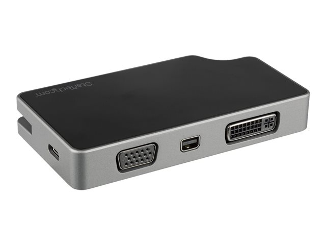 Cet adaptateur vidéo multiport USB-C offre une solution portable pour connecter votre ordinateur portable USB Type-C à un écran VGA, DVI, HDMI ou Mini DisplayPort (Mini DP). Il est doté de la fonctionnalité USB Power Delivery pour vous permettre d''alimenter votre ordinateur portable lorsque vous diffusez de la vidéo à l''aide du même port USB-C.