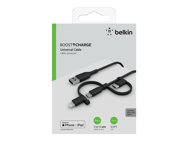 Câble USB - USB mâle pour Micro-USB de type B, Lightning, 24 pin USB-C mâle - 1 m