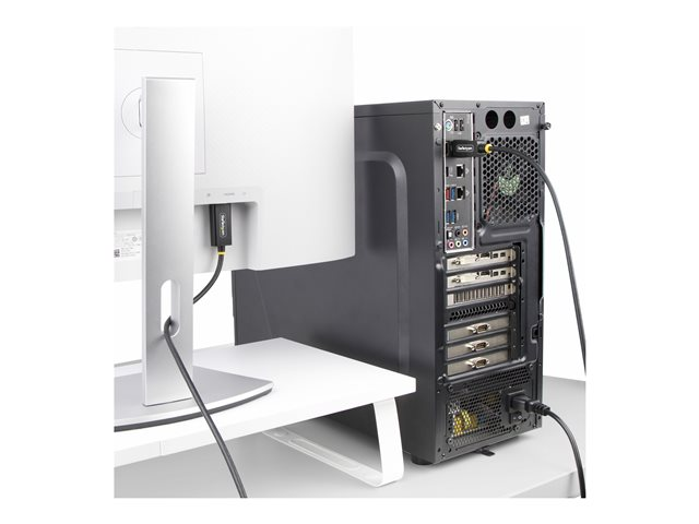 Connectez un ordinateur de bureau doté d'une sortie DisplayPort à un moniteur HDMI capable de prendre en charge le 4K 60Hz en plage dynamique élevée (HDR) à l'aide de ce câble adaptateur actif DisplayPort vers HDMI de 2 mètre.