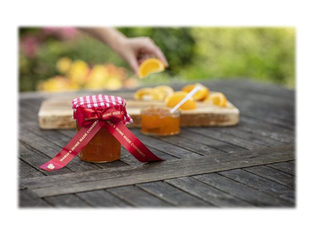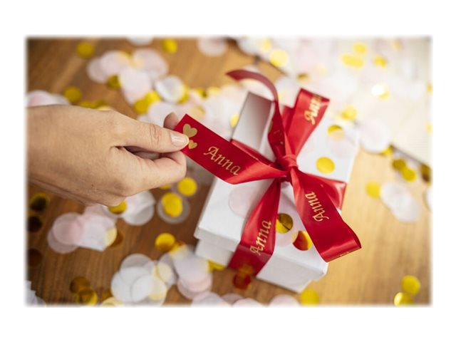 Lors d'occasions spéciales, utilisez le ruban TZe-RW54 avec votre étiqueteuse P-touch pour adresser vos vœux aux personnes qui vous sont chères. Laissez libre cours à vos talents et personnalisez vos cadeaux, vos cartes et vos créations avec le ruban tissu TZe-RW54 Brother original.