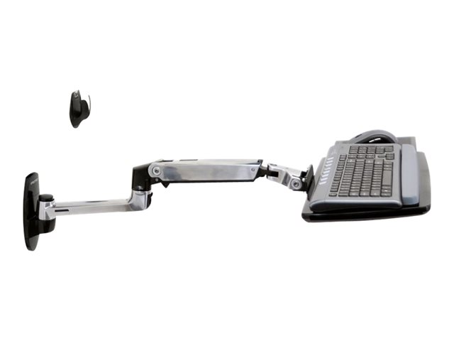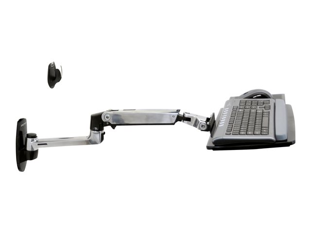 Construction robuste en aluminium poli! Le bras LX pour clavier est un support mural permettant le réglage en hauteur et l'orientation du clavier. Il permet de positionner le clavier dans la position de travail la plus confortable, en posture assise ou debout. Caractéristique très appréciée pour les environnements restreints ou encombrés, le clavier peut être replié à moins de 12 cm du mur. Combiné au bras LX pour écran plat, il crée un poste de travail informatique compact et complet.