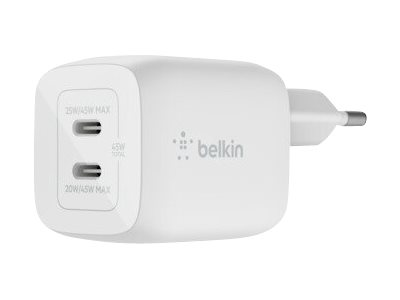 Description du produit Belkin BoostCharge Pro GaN adaptateur secteur - Technologie PPS et GaN - 2 x USB-C - 45 Watt Description du produit Belkin BoostCharge Pro GaN adaptateur secteur - Technologie PPS et GaN - 2 x USB-C - 45 Watt Type de Produit Adaptateur secteur Type de Produit Adaptateur secteur Couleur Blanc Couleur Blanc Type de prise Total 2: 2 x USB-C Type de prise Total 2: 2 x USB-C Technologie de charge rapide Fast Charge, Power Delivery 3.0 Technologie de charge rapide Fast Charge, Power Delivery 3.0 Alimentation fournie 45 Watt Alimentation fournie 45 Watt -