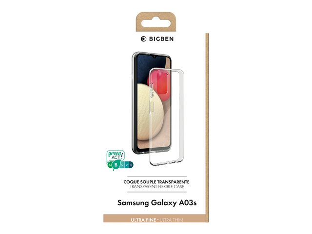 Description du produit BIGBEN Connected - coque de protection pour téléphone portable Type de Produit Coque de protection pour téléphone portable Matériau Silicone Couleur Noir Garantie du fabricant Garantie de 2 ans Conçu pour Samsung Galaxy A03s -