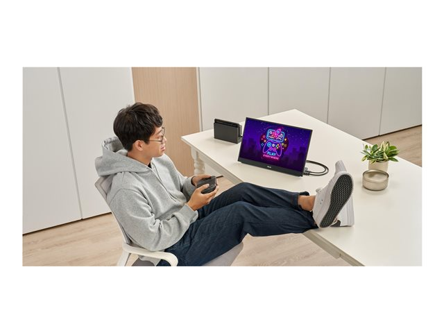 L'ASUS ZenScreen MB16QHG est un moniteur portable doté d'un écran IPS WQXGA (2560 x 1600) au taux de rafraîchissement SmoothMotion de 120 Hz. Son profil ultrafin et sa conception légère garantissent une portabilité inégalée, ce qui en fait l'écran secondaire idéal pour étendre l'espace de travail d'un moniteur sur deux écrans et améliorer la productivité, en particulier pour les travailleurs hybrides. Une béquille intégrée en forme de L donne au ZenScreen MB16QHG la polyvalence nécessaire pour être utilisé en orientation paysage ou portrait, tandis que les ports USB-C des deux côtés de l'écran apportent de la flexibilité. Pour couronner le tout, la technologie HDR conforme à la norme DisplayHDR 400 et le spectre DCI-P3 garantissent un contraste et des performances de couleurs exceptionnels.