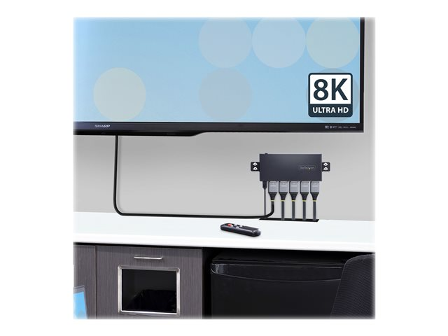 StarTech.com 4-Port 8K HDMI Switch, HDMI 2.1 Switcher 4K 120Hz HDR10+, 8K 60Hz UHD, HDMI Switch 4 In 1 Out, Auto/Manual Source Switching, Remote Control and Power Adapter Included