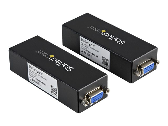 L'extendeur vidéo VGA sur Cat5 ST121UTPEP - Point à Point vous permet de connecter un écran/projecteur à une distance d'au plus 80 m de la source du signal VGA. Le modèle ST121UTPEP est un kit complet qui inclut une unité à la fois locale et distante, offrant ainsi une solution de bout en bout pour une connexion unique source/écran et permettant une transmission du signal VGA source sur un câble Ethernet standard (Câble UPT Cat5 ou supérieur, terminaison avec connecteurs RJ45).
