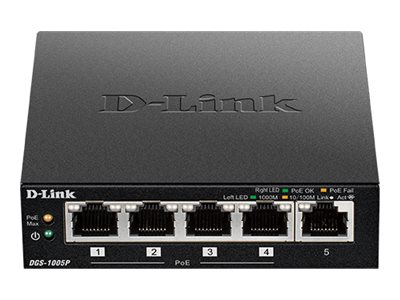 D-Link DGS 1005P - Commutateur - 5 x 10/100/1000 (4 PoE+) - de bureau - PoE+ (60 W)